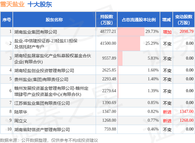 根据雪天盐业2025年三季报公布的十大股东详情如下: