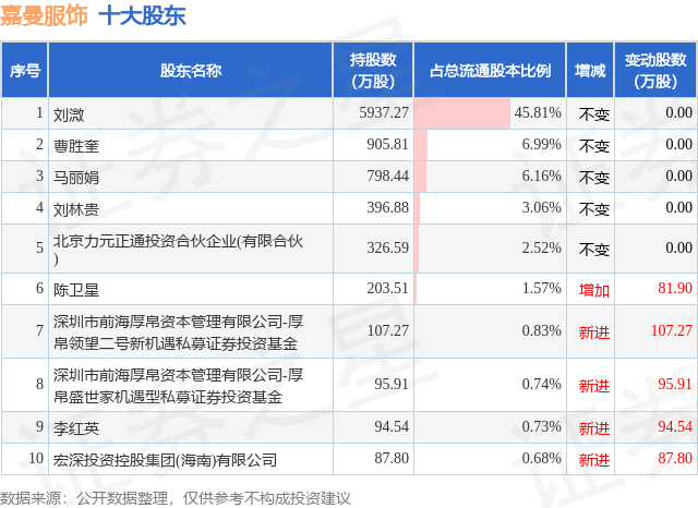 根据嘉曼服饰2025年三季报公布的十大股东详情如下:
