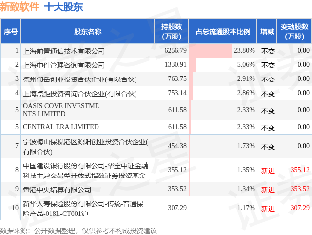 根据新致软件2025年三季报公布的十大股东详情如下: