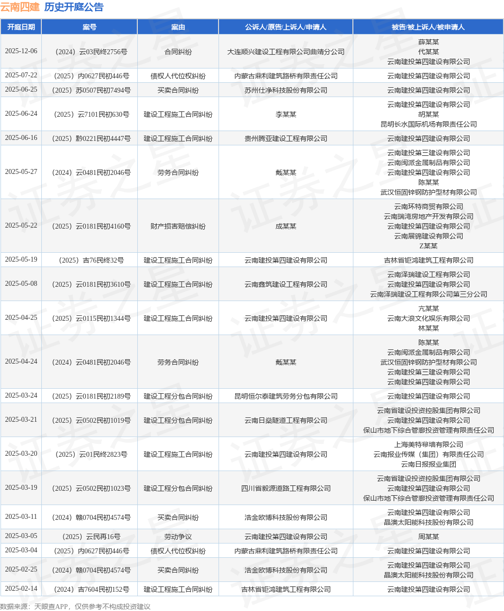 证券之星消息,根据天眼查APP显示,近日公布了一则云南建投第四建设有限公司作为被告/被上诉人的开庭公告,详细内容如下: