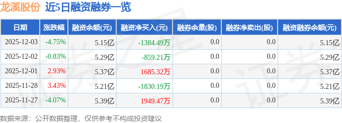 龙溪股份融资融券信息显示,融资方面,当日融资买入7296.37万元,融资偿还8680.86万元,融资净偿还1384.49万元。融券方面,融券卖出0.0股,融券偿还0.0股,融券余量0.0股,融券余额0.0万元。融资融券余额5.15亿元。