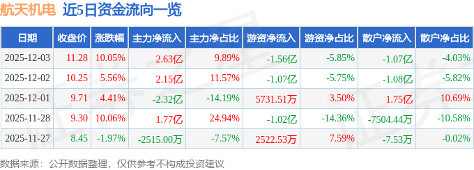 12月3日的资金流向数据方面,主力资金净流入2.63亿元,占总成交额9.89%,游资资金净流出1.56亿元,占总成交额5.85%,散户资金净流出1.07亿元,占总成交额4.03%。