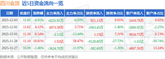 证券之星12月4日盘中消息,9点45分四川金顶(600678)触及涨停板。其所属行业水泥目前下跌。领涨股为四川金顶。该股为太空算力,西部大开发,新能源汽车概念热股,当日太空算力概念上涨0.7%。
