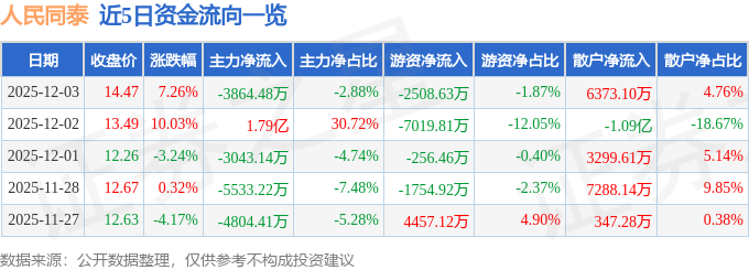 12月3日的资金流向数据方面,主力资金净流出3864.48万元,占总成交额2.88%,游资资金净流出2508.63万元,占总成交额1.87%,散户资金净流入6373.1万元,占总成交额4.76%。