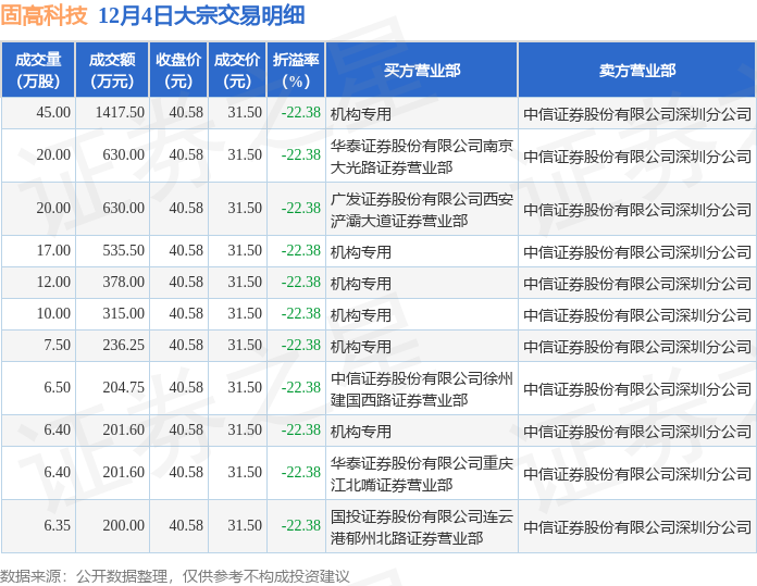 证券之星消息,12月4日固高科技发生大宗交易,交易数据如下: