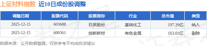 近10日内上证材料(000033)指数成份股做了调整,新纳入了1只股票,剔除了1只股票。