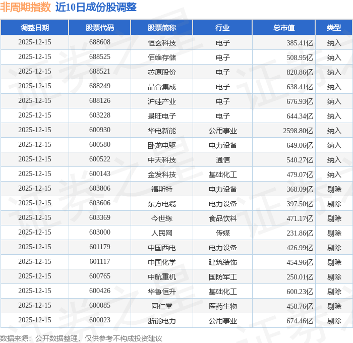 近10日内非周期(000064)指数成份股做了调整,新纳入了10只股票,剔除了10只股票。