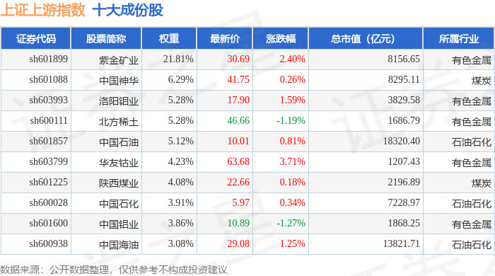 证券之星消息,12月4日,上证上游(000094)指数报收于4275.46点,涨0.59%,成交480.61亿元,换手率0.56%。当日该指数成份股中,上涨的有20家,西部矿业以4.02%的涨幅领涨,下跌的有24家,华阳股份以3.97%的跌幅领跌。