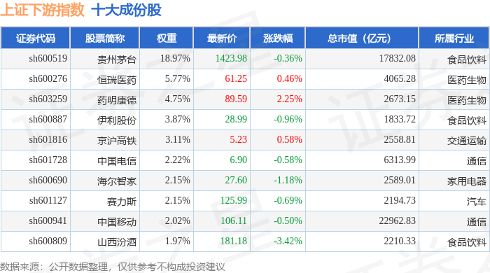 证券之星消息,12月4日,上证下游(000096)指数报收于4248.76点,跌0.21%,成交573.51亿元,换手率0.6%。当日该指数成份股中,上涨的有51家,云天励飞以4.79%的涨幅领涨,下跌的有93家,舍得酒业以3.76%的跌幅领跌。