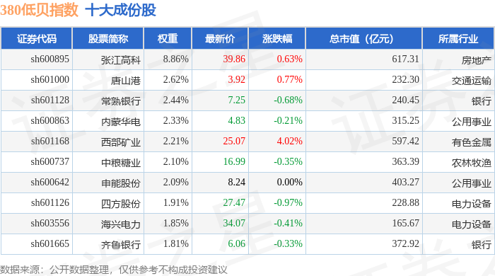 证券之星消息,12月4日,380低贝(000138)指数报收于8161.92点,跌0.06%,成交196.73亿元,换手率0.75%。当日该指数成份股中,上涨的有30家,西部矿业以4.02%的涨幅领涨,下跌的有63家,浦东建设以3.11%的跌幅领跌。