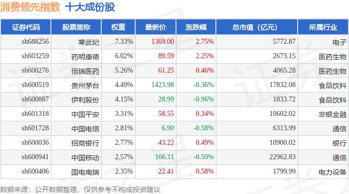 证券之星消息,12月4日,消费领先(000148)指数报收于9393.04点,涨0.14%,成交685.75亿元,换手率0.24%。当日该指数成份股中,上涨的有38家,云天励飞以4.79%的涨幅领涨,下跌的有57家,舍得酒业以3.76%的跌幅领跌。