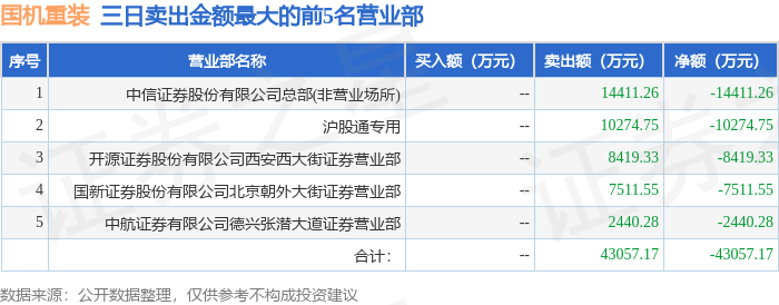 证券之星消息,沪深交易所2025年12月4日公布的交易公开信息显示,国机重装(601399)因非ST、*ST和S证券连续三个交易日内收盘价格涨幅偏离值累计达到20%的证券登上龙虎榜。此次是近5个交易日内第2次上榜。