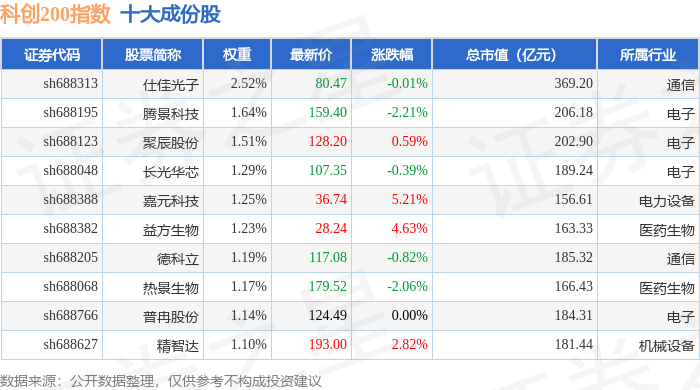 科创200(000699)指数十大成份股详情如下: