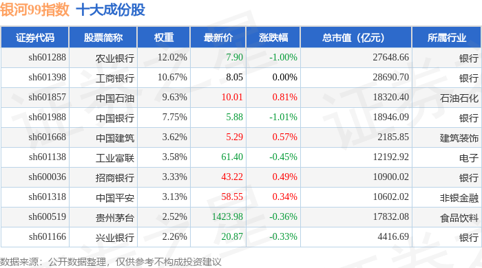 银河99(000959)指数十大成份股详情如下: