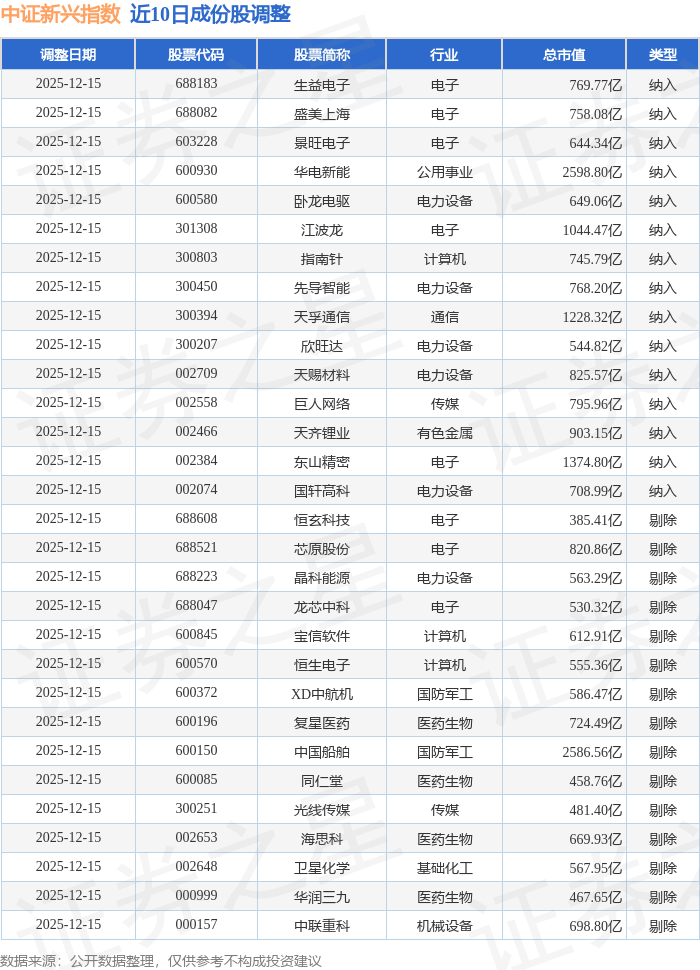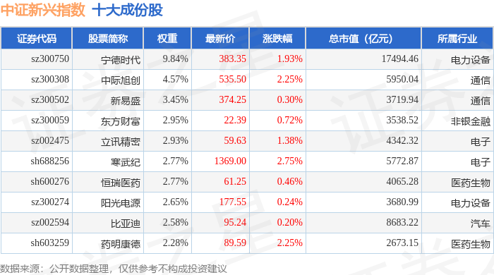 中证新兴(000964)指数十大成份股详情如下: