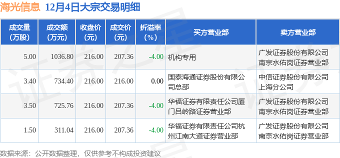 证券之星消息,12月4日海光信息发生大宗交易,交易数据如下:
