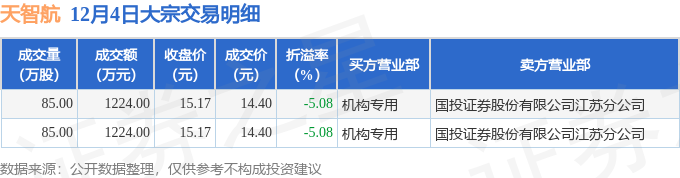 证券之星消息,12月4日天智航发生大宗交易,交易数据如下: