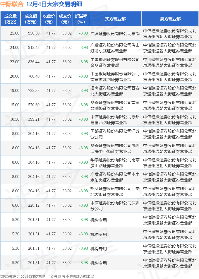 证券之星消息,12月4日中际联合发生大宗交易,交易数据如下: