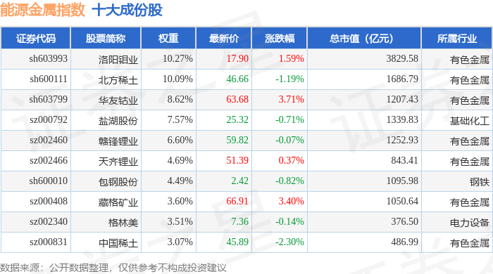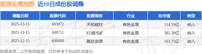 近10日内能源金属(399366)指数成份股做了调整,新纳入了3只股票。