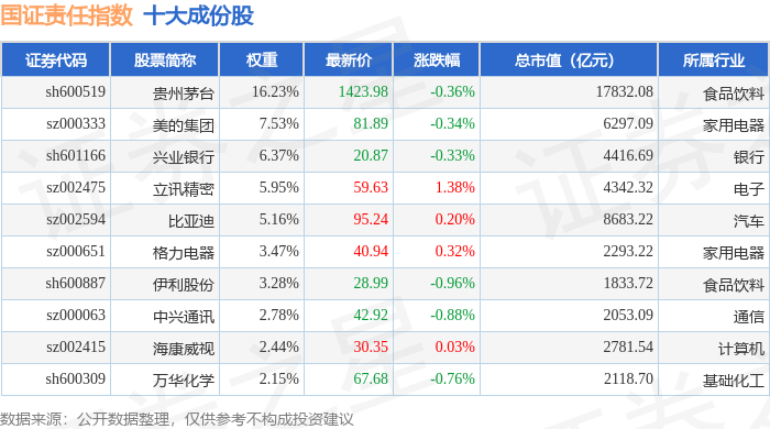 证券之星消息,12月4日,国证责任(399369)指数报收于1531.3点,跌0.27%,成交544.57亿元,换手率0.51%。当日该指数成份股中,上涨的有27家,兴齐眼药以3.02%的涨幅领涨,下跌的有69家,广咨国际以4.9%的跌幅领跌。