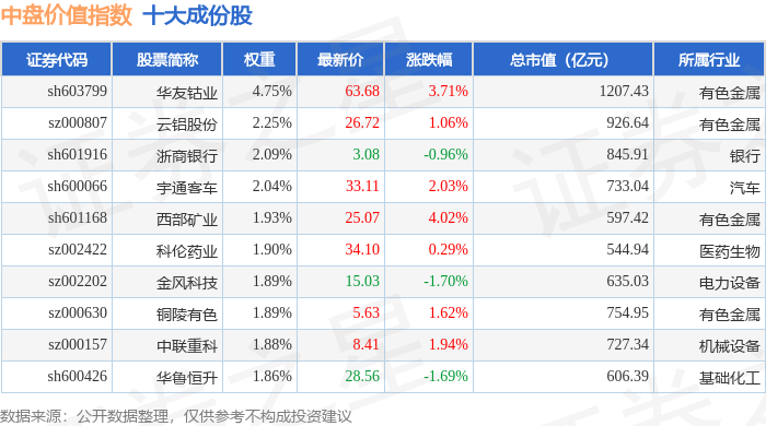 证券之星消息,12月4日,中盘价值(399375)指数报收于5721.71点,涨0.04%,成交401.57亿元,换手率0.9%。当日该指数成份股中,上涨的有33家,西部矿业以4.02%的涨幅领涨,下跌的有62家,华阳股份以3.97%的跌幅领跌。