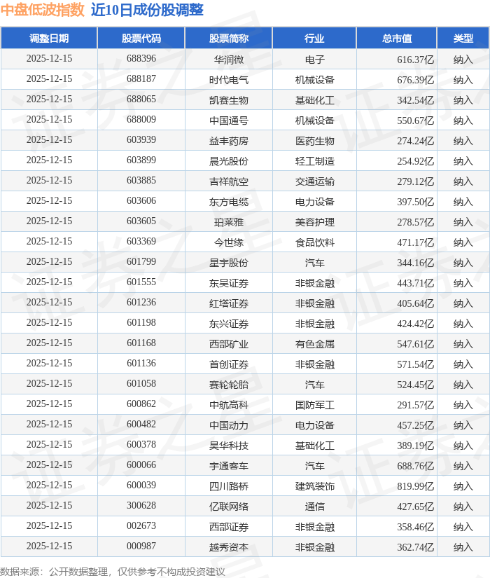近10日内中盘低波(399406)指数成份股做了调整,新纳入了25只股票。