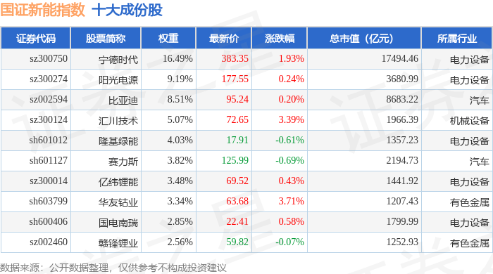 近10日内国证新能(399412)指数成份股做了调整,新纳入了1只股票。