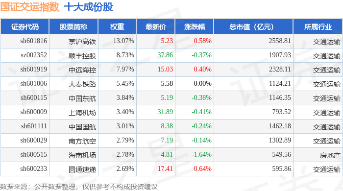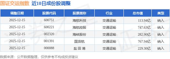 近10日内国证交运(399433)指数成份股做了调整,新纳入了5只股票。
