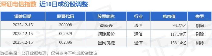 近10日内深证电信(399621)指数成份股做了调整,剔除了3只股票。