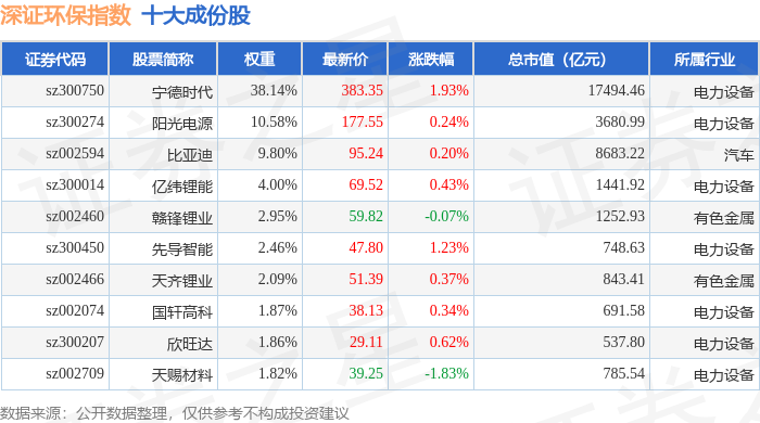 证券之星消息,12月4日,深证环保(399638)指数报收于7374.95点,涨0.77%,成交416.0亿元,换手率0.9%。当日该指数成份股中,上涨的有16家,科达利以3.62%的涨幅领涨,下跌的有23家,晶澳科技以2.44%的跌幅领跌。