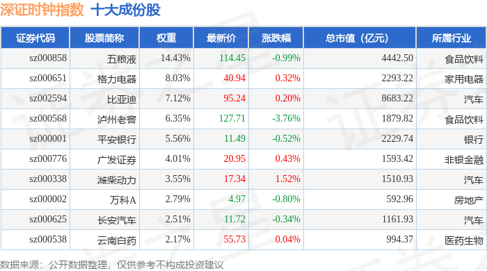 深证时钟(399644)指数十大成份股详情如下: