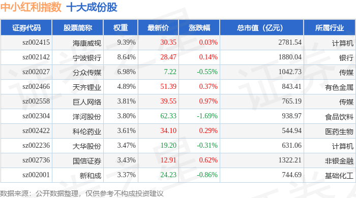 证券之星消息,12月4日,中小红利(399649)指数报收于3160.43点,跌0.28%,成交185.11亿元,换手率0.75%。当日该指数成份股中,上涨的有17家,盈趣科技以10.02%的涨幅领涨,下跌的有32家,森马服饰以3.69%的跌幅领跌。