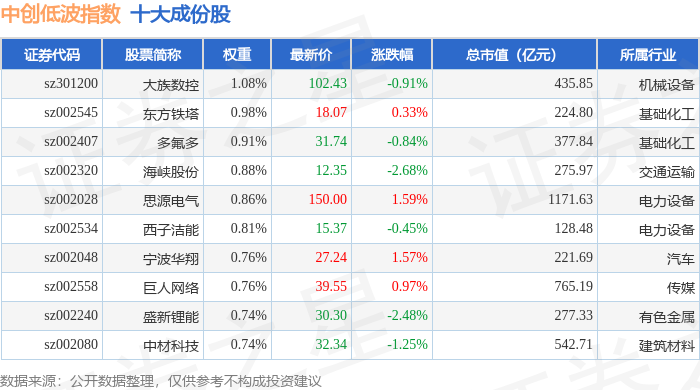 中创低波(399665)指数十大成份股详情如下: