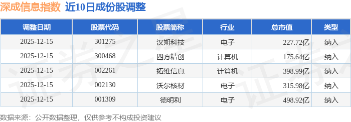 近10日内深成信息(399687)指数成份股做了调整,新纳入了5只股票。