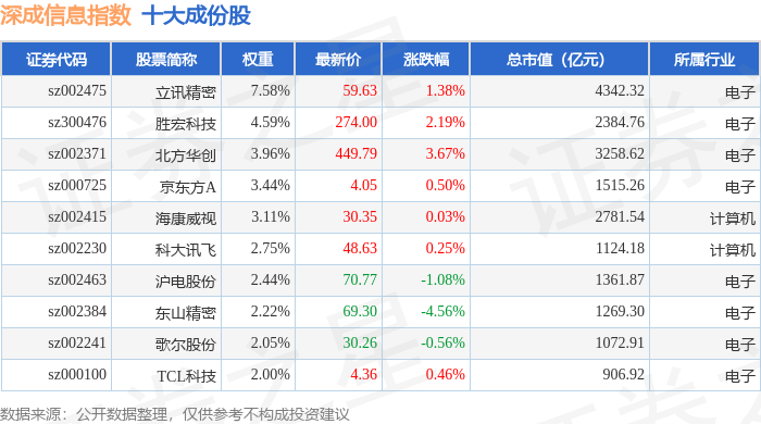 深成信息(399687)指数十大成份股详情如下: