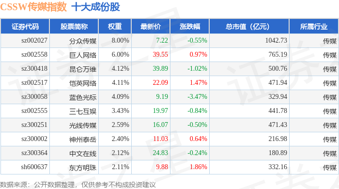 近10日内CSSW传媒(399810)指数成份股做了调整,新纳入了2只股票,剔除了3只股票。