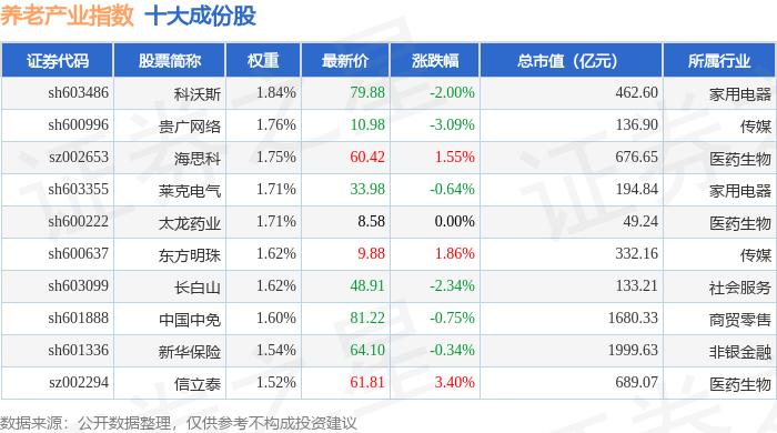 近10日内养老产业(399812)指数成份股做了调整,新纳入了8只股票,剔除了8只股票。