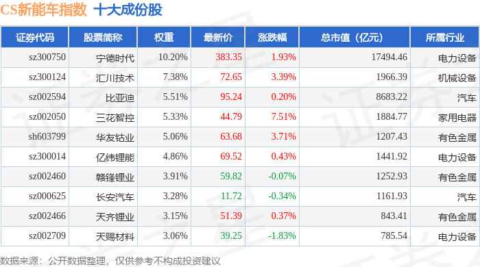 证券之星消息,12月4日,CS新能车(399976)指数报收于4234.56点,涨1.07%,成交651.4亿元,换手率2.17%。当日该指数成份股中,上涨的有27家,三花智控以7.51%的涨幅领涨,下跌的有22家,德方纳米以2.55%的跌幅领跌。