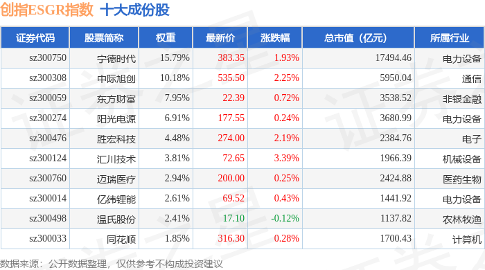 资金流向方面,创指ESGR(470028)指数成份股当日主力资金净流出合计15.63亿元,游资资金净流出合计2.52亿元,散户资金净流入合计18.15亿元。成份股资金流向详情见下表: