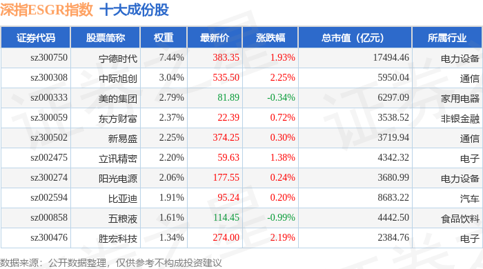 证券之星消息,12月4日,深指ESGR(470026)指数报收于18624.89点,涨0.42%,成交3177.08亿元,换手率1.27%。当日该指数成份股中,上涨的有167家,盈趣科技以10.02%的涨幅领涨,下跌的有223家,华兰疫苗以5.75%的跌幅领跌。