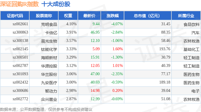 深证回购R(470063)指数十大成份股详情如下: