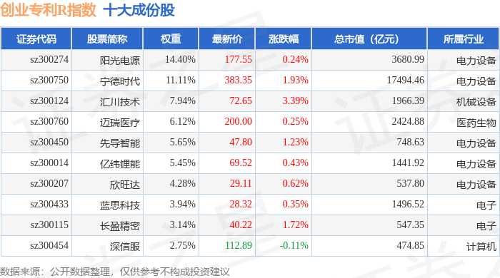 创业专利R(470068)指数十大成份股详情如下: