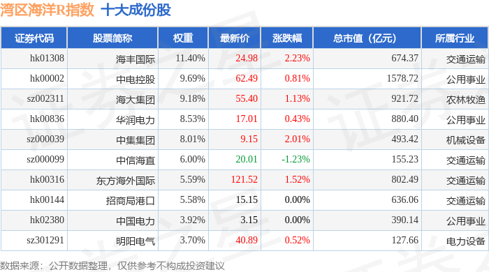 近10日内湾区海洋R(480019)指数成份股做了调整,新纳入了2只股票。