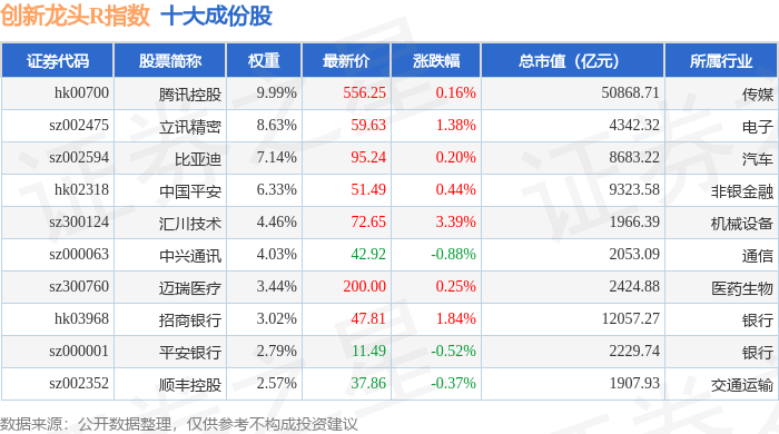 证券之星消息,12月4日,创新龙头R(480036)指数报收于3995.12点,涨0.32%,成交787.39亿元,换手率1.11%。当日该指数成份股中,上涨的有43家,和而泰以10.01%的涨幅领涨,下跌的有57家,广和通以6.51%的跌幅领跌。