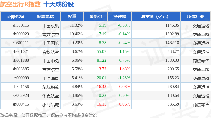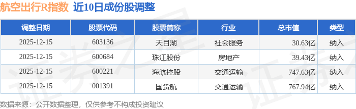近10日内航空出行R(480059)指数成份股做了调整,新纳入了4只股票。