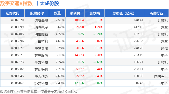 近10日内数字交通R(480075)指数成份股做了调整,新纳入了1只股票。