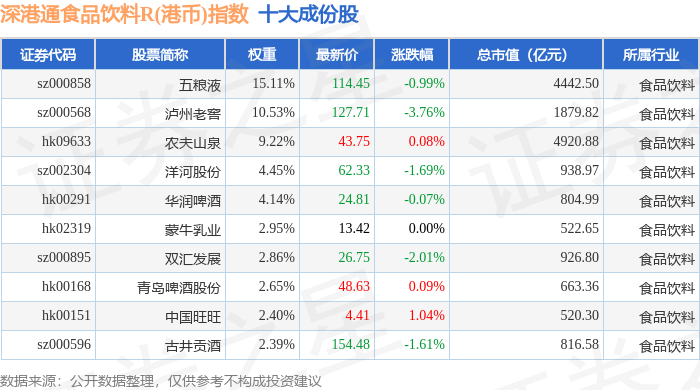 深港通食品饮料R(港币)(483066)指数十大成份股详情如下:
