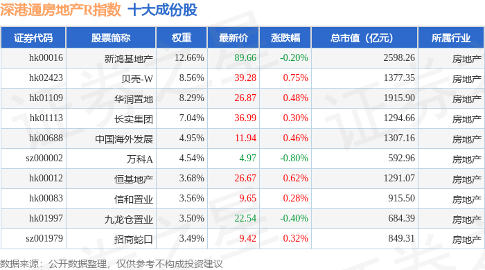 资金流向方面,深港通房地产R(483071)指数成份股当日主力资金净流出合计7228.62万元,游资资金净流入合计6997.92万元,散户资金净流入合计230.7万元。成份股资金流向详情见下表: