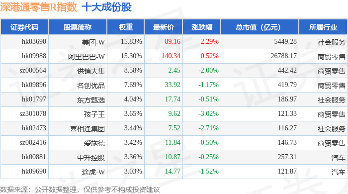 深港通零售R(483073)指数十大成份股详情如下: