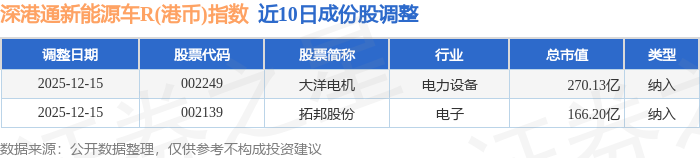 近10日内深港通新能源车R(港币)(483088)指数成份股做了调整,新纳入了2只股票。